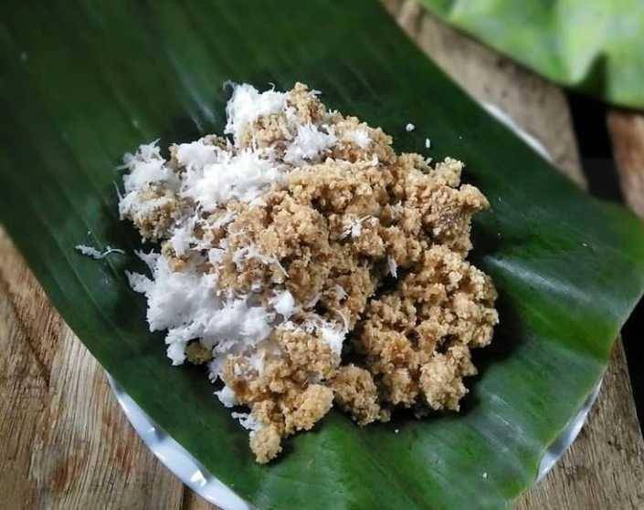 - Kukus pula kelapa parut dengan daun pandan dan garam selama 15 menit, angkat.