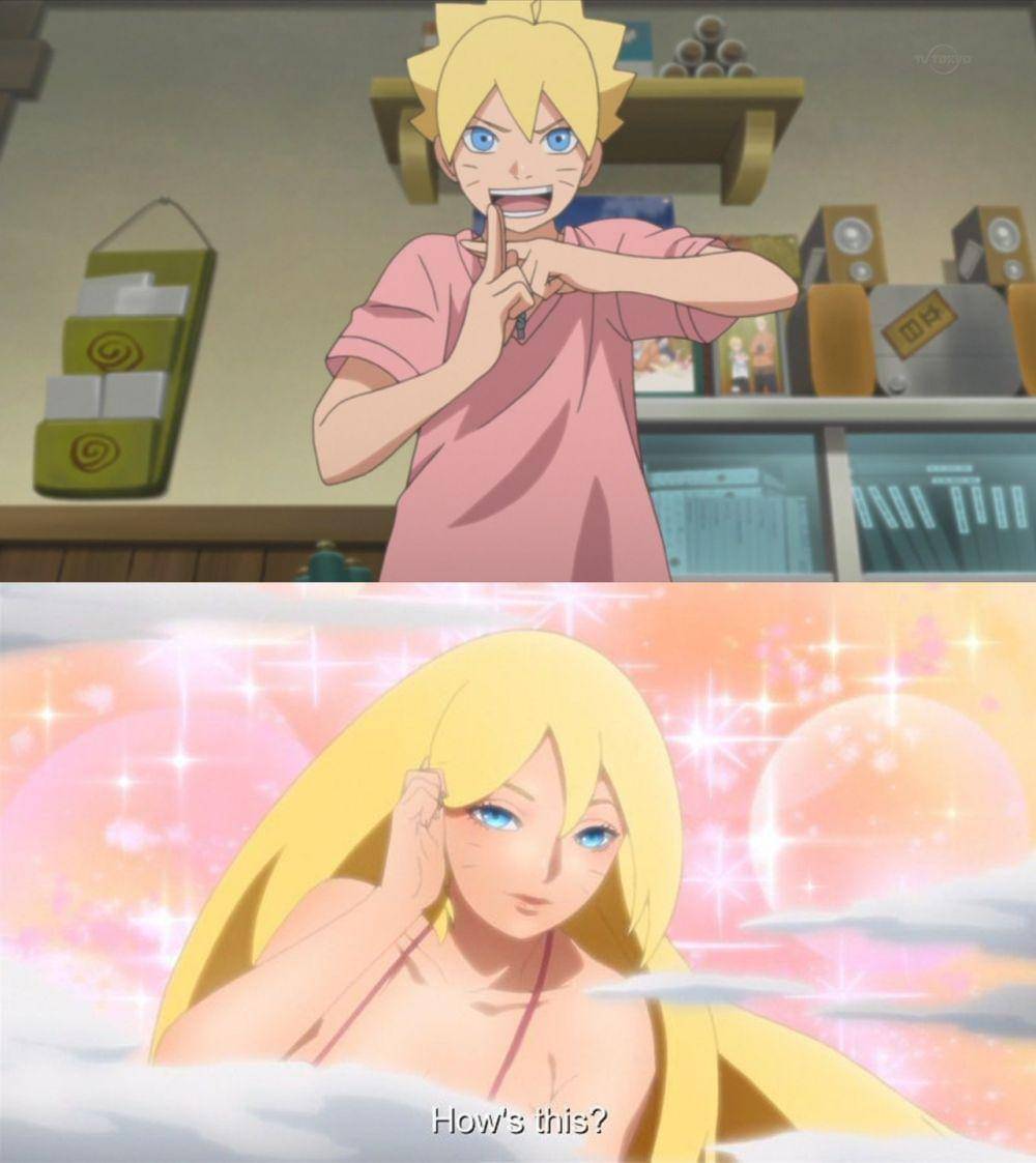 Kalau 'wanita' yang satu ini tentu tak mungkin menjadi pasangan Boruto. Pasalnya, ini hanya wanita hasil transfomasi Boruto melalui Oiroke no Jutsu. Sebagaimana ayahnya, Boruto juga mampu menggunakan jurus seksi ini.