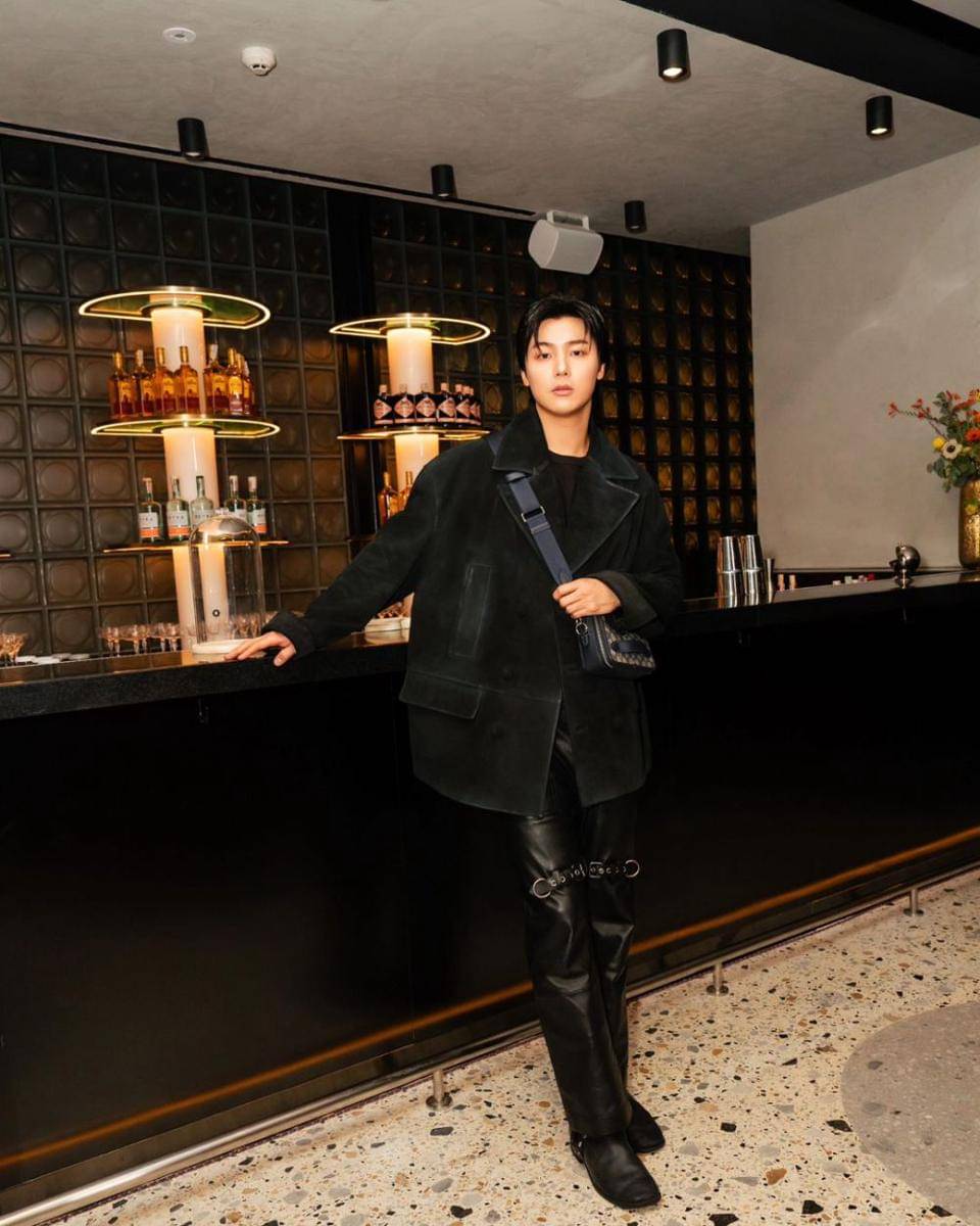 8. Vibes cowok mamba manly abis, kali ini Min Hyuk padankan basic tee dibalut vintage casual blazer, leather pants, dan loafers