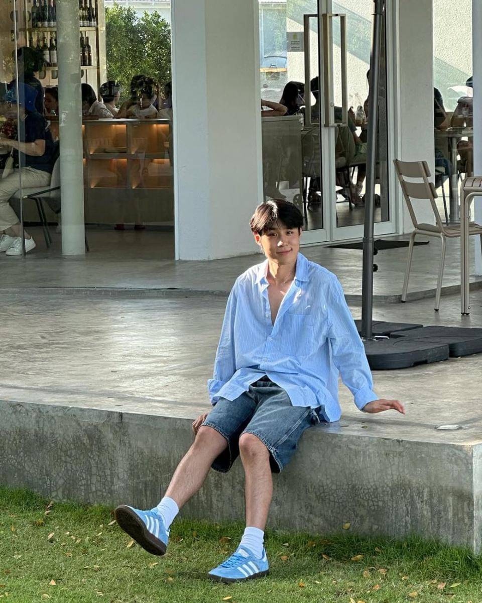 - Nut Thanat LYKN, idol Thailand, menonjolkan look streetwear-nya dengan t-shirt, kemeja, cargo jeans, dan celana jeans trendi.