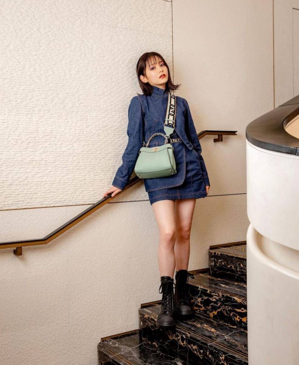 10. Bila kamu gak suka warna yang ngejreng, coba kenakan setelan nuansa denim seperti yang dikenakan Rinka berikut ini