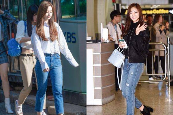 Tak hanya selalu tampil girly dan feminin dengan bawahan rok atau dress, Tzuyu Twice juga menggunakan celana jeans sebagai salah satu item busana andalannya.