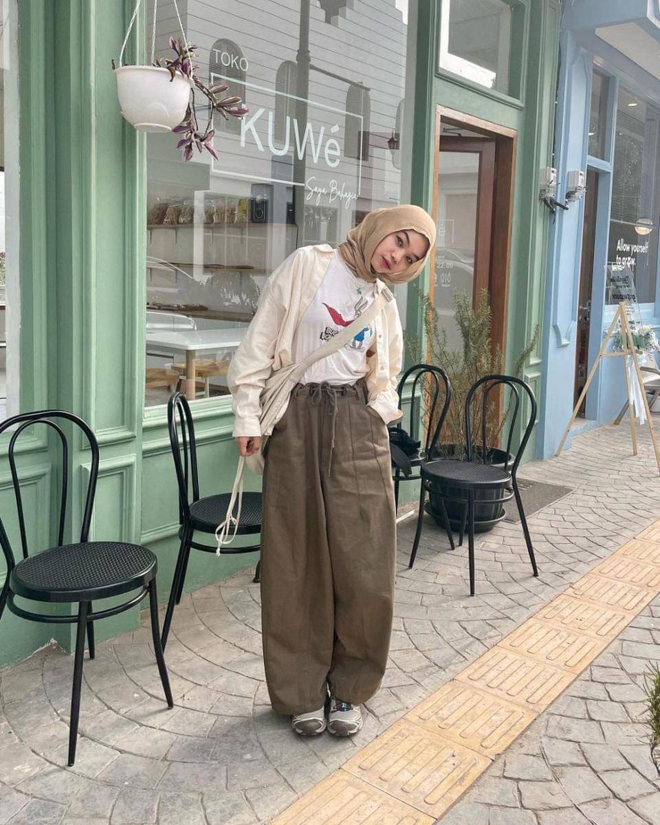 7 Ide Outfit Hijab Earth Tone Boyish ala Clara Yulia, Kece Maksimal!