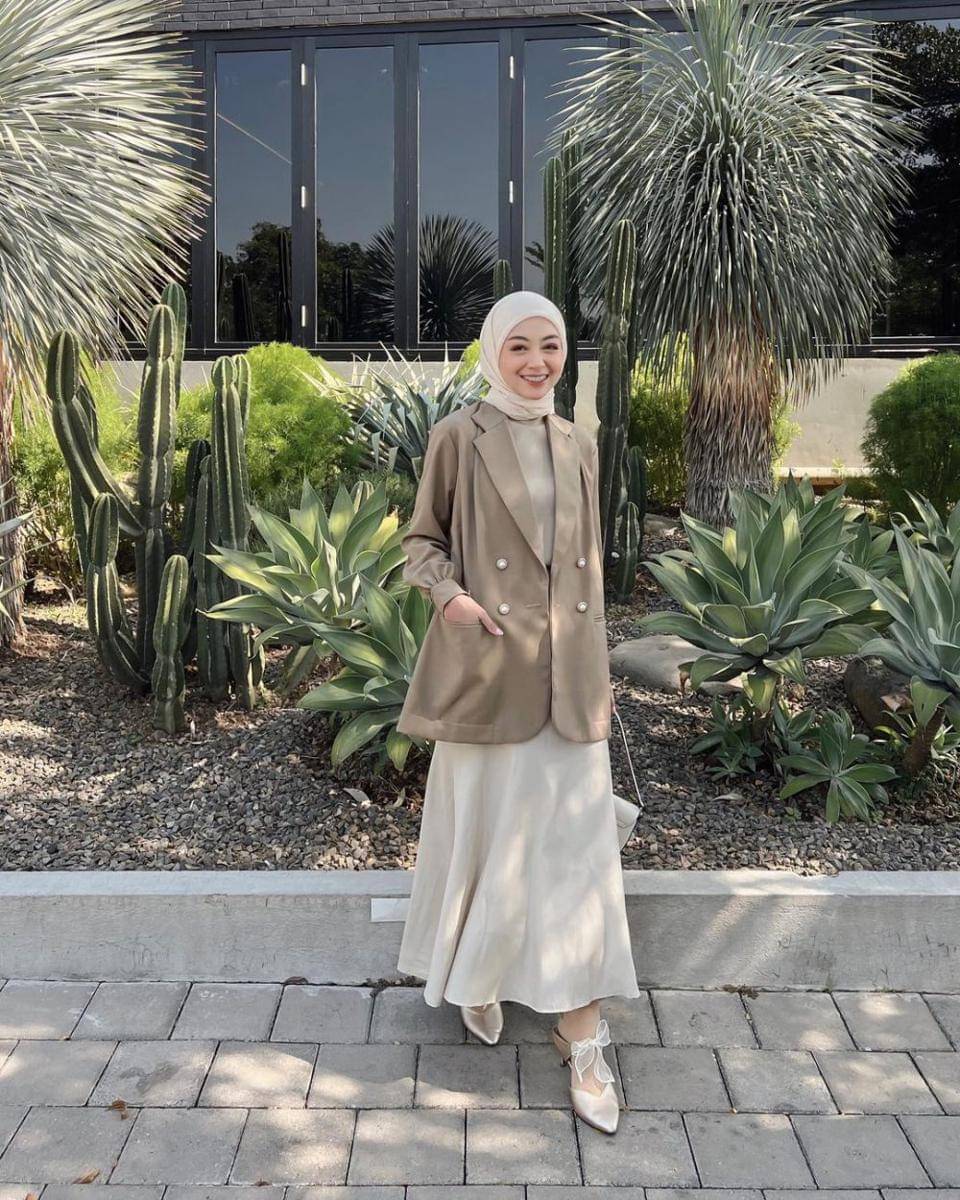 8 Inspirasi Office Look Nuansa Earth Tone ala Meirani Amalia, Elegan!