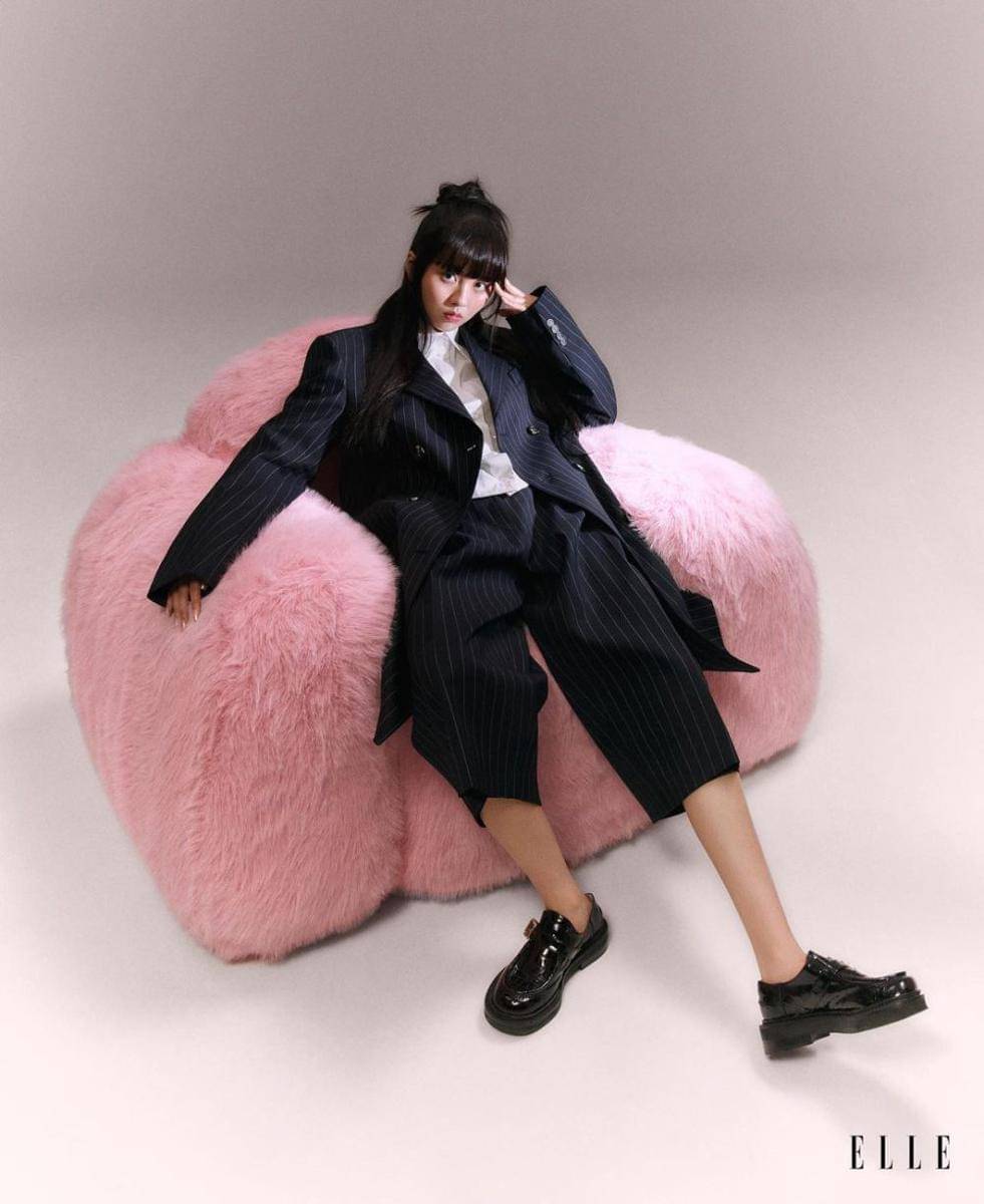 9. Terakhir, kamu bisa ikuti gaya Kim So Hyun dengan memakai padanan one set yang terdiri dari plaid blazer dan short pants berwarna pink
