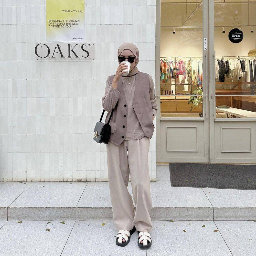7. Loose pants, blouse panjang dan vest dengan warna senada begini bikin look kamu jadi lebih berkelas, loh