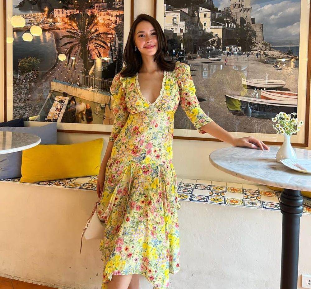 3. V-neck floral dress kuning ini bakal membuatmu terlihat lebih ceria dan manis, lho