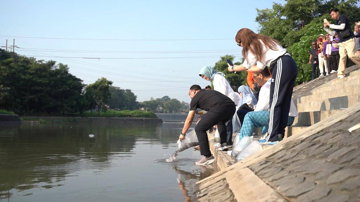 3. Tabur ribuan benih lele di Banjir Kanal Barat Semarang