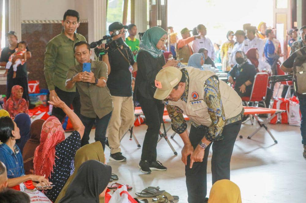 Pj Gubernur Jawa Tengah, Nana Sudjana berkesempatan mengecek langsung pengungsian yang ditempati Okta dan suaminya.