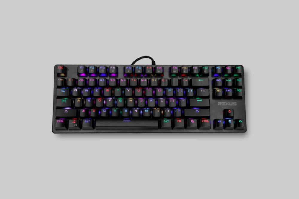 Rekomandasi selanjutnya datang dari merek lokal, yaitu Rexus dengan seri produk Legionare MX9 TKL. Untuk kamu yang bosan dengan keyboard yang warnanya monoton, nah keyboard ini cocok banget buat kamu karena menyediakan empat pilihan warna, yaitu hitam, putih, biru, dan pink.