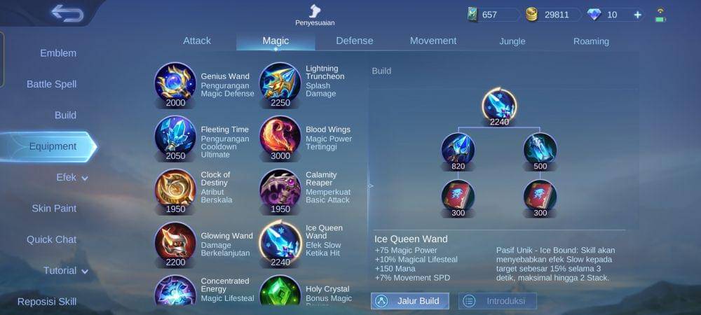 Terlihat dari item ini yang memiliki atribut +75 magic power menambahkan damage pada hero, +10% magical lifesteal memberikan efek lifesteal pada setiap skill yang akan digunakan artinya memberikan tambahan darah atau HP saat menggunakan skill.