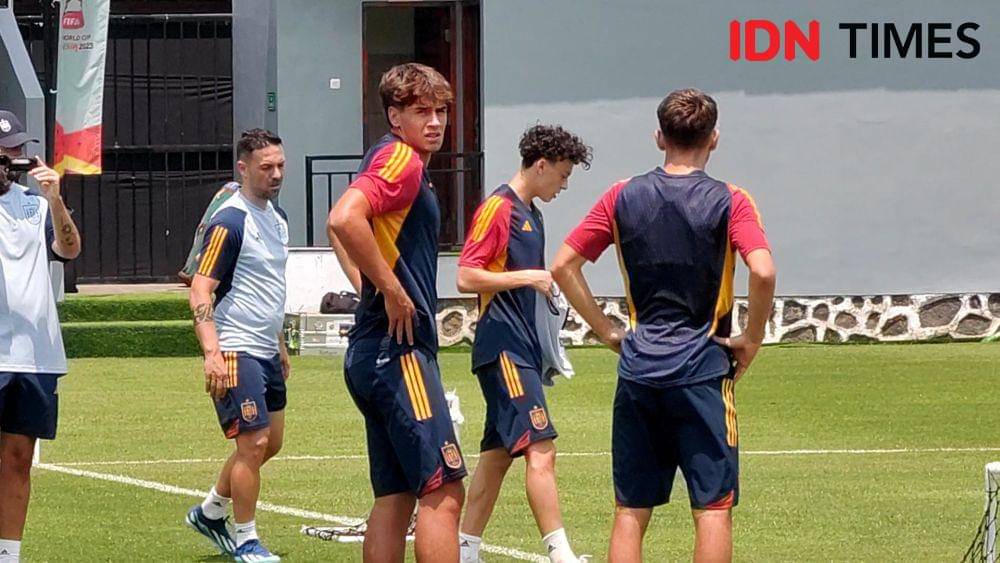 Surakarta, IDN Times - Timnas Spanyol menjalani latihan perdana persiapan Piala Dunia U-17 2023 Indonesia di Lapangan Mini Blulukan, Colomadu, Karanganyar, Selasa (7/11/2023) sekitar pukul 10.00 WIB.